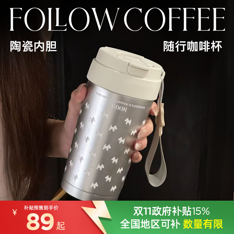GOOM咖啡随行保温冷2025新款女生高颜值陶瓷内胆便携带吸管水杯子