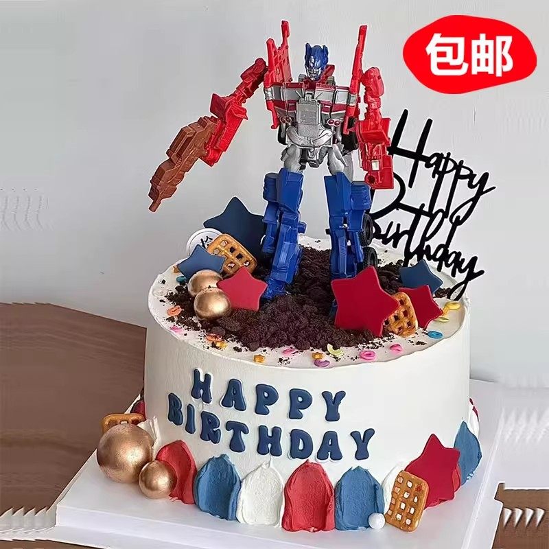 儿童生日蛋糕装饰摆件恐龙Q版变形侠大黄蜂擎天柱汽车机器人变装