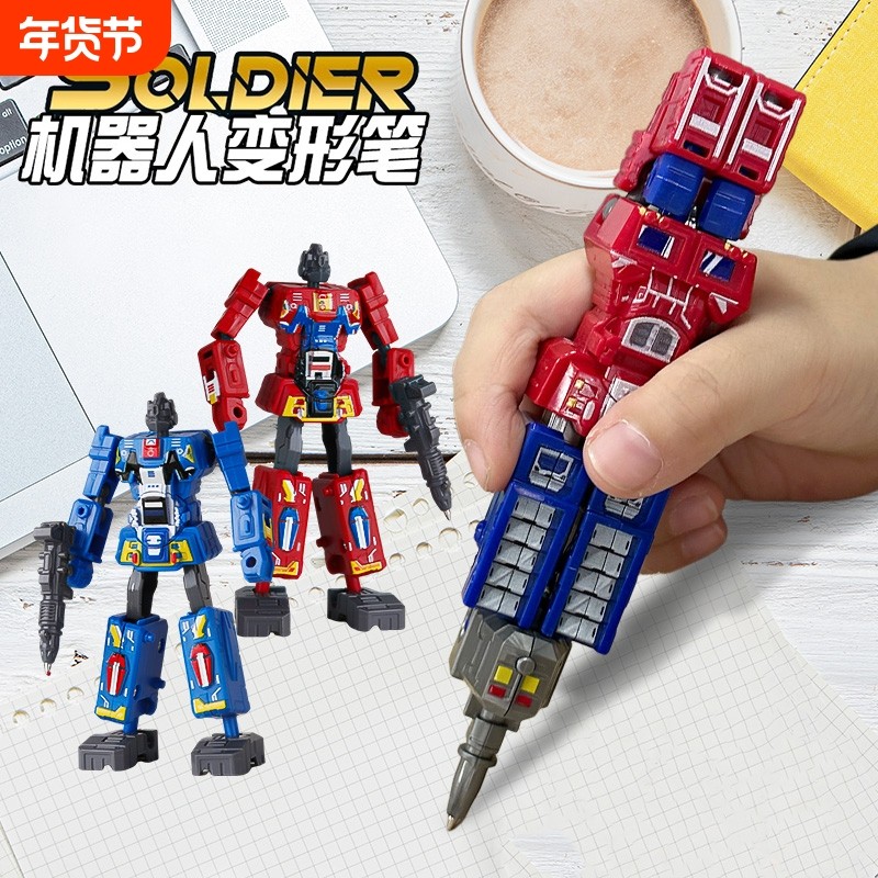 儿童变形玩具男孩益智擎天柱圆珠笔汽车机器人金刚战士笔文具机甲
