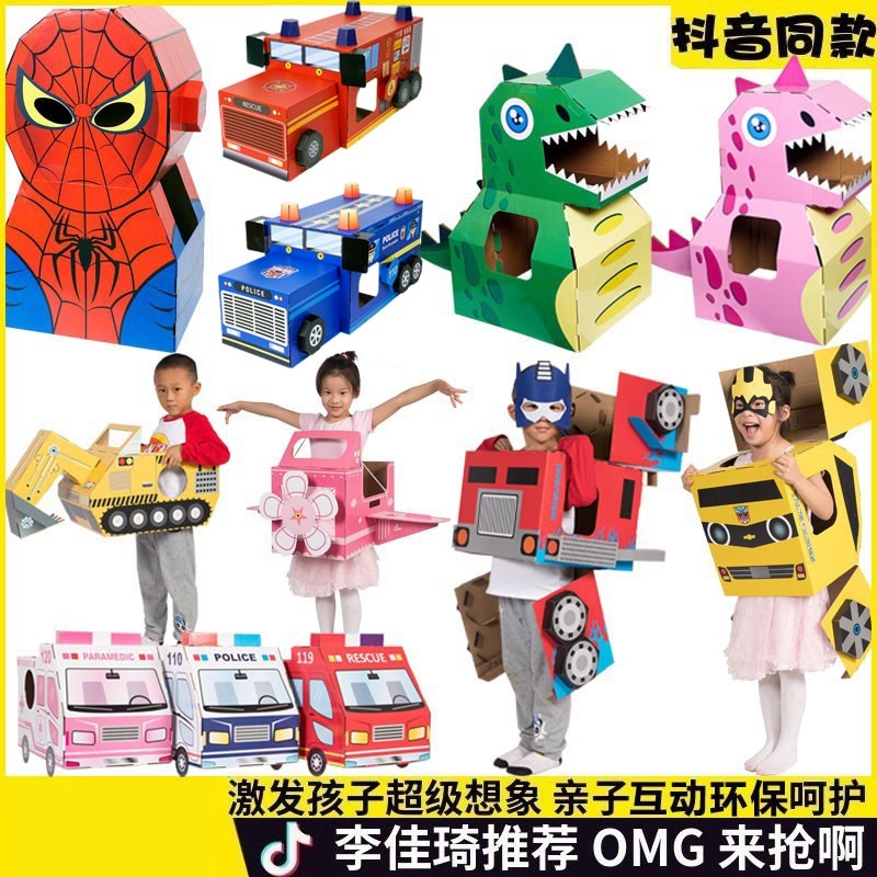 纸箱恐龙可穿戴变形金刚汽车擎天柱大黄蜂机器人幼儿纸板手工DIY