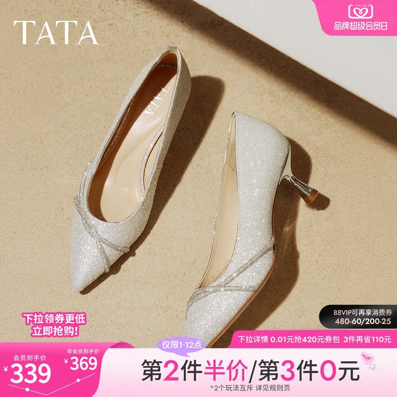 TATA他她晨曦流光高跟鞋婚鞋新娘鞋伴娘鞋气质宴会细跟尖头高跟鞋