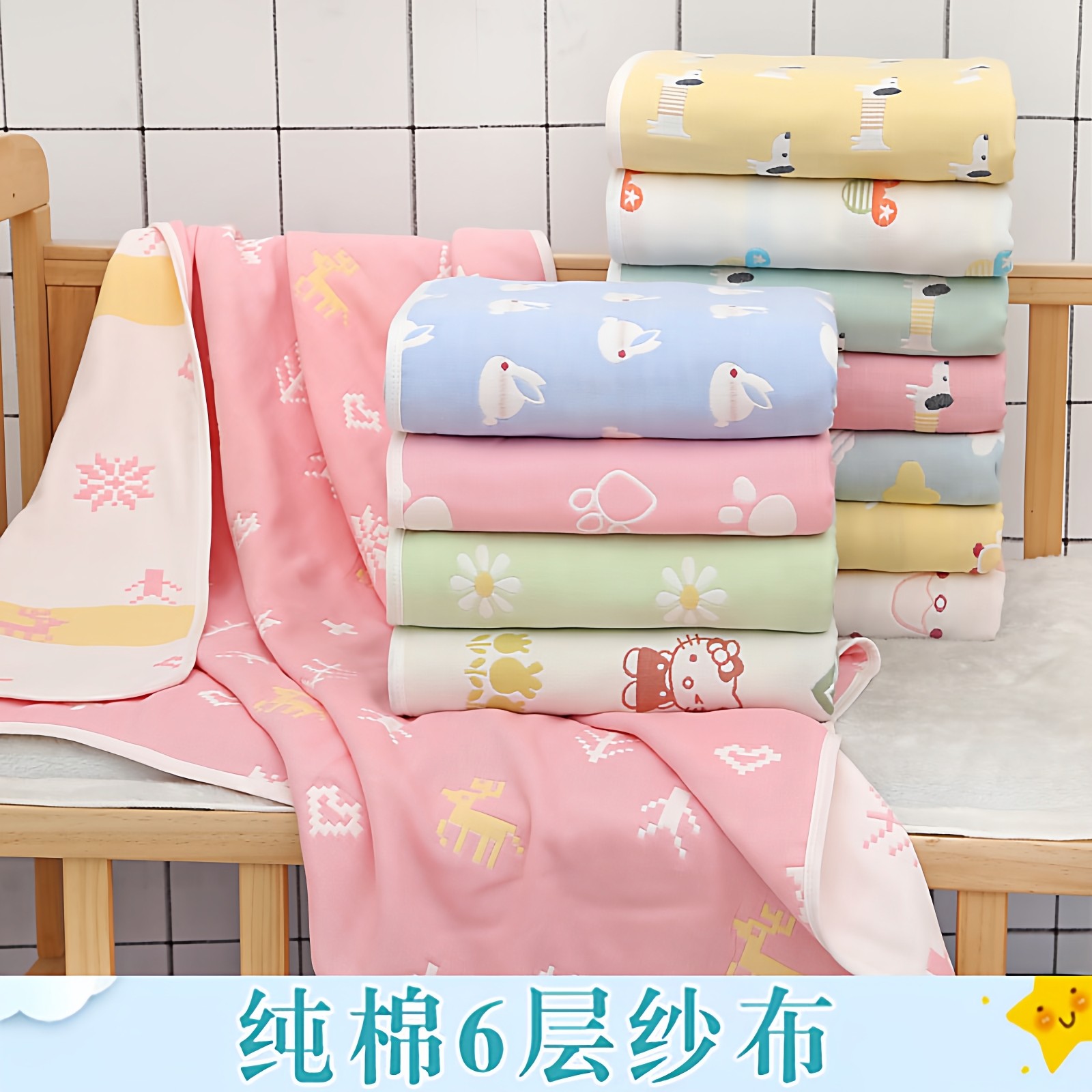 春秋冬季纯棉婴儿纱布浴巾包被六层大号抱被盖被儿童毯加厚空调被
