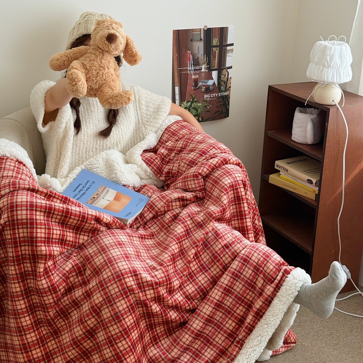 ins风毛毯沙发盖毯羊羔绒加厚珊瑚绒办公室午睡午休空调儿童毯子