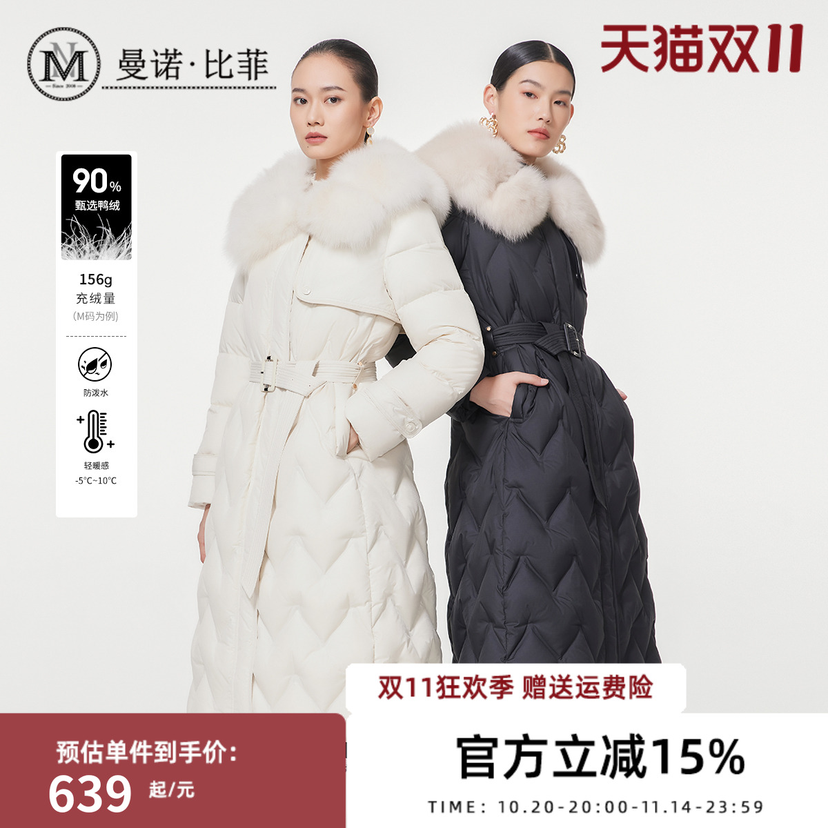曼诺比菲商场同款冬季高级感显瘦修身羽绒服女过膝MEDI146112