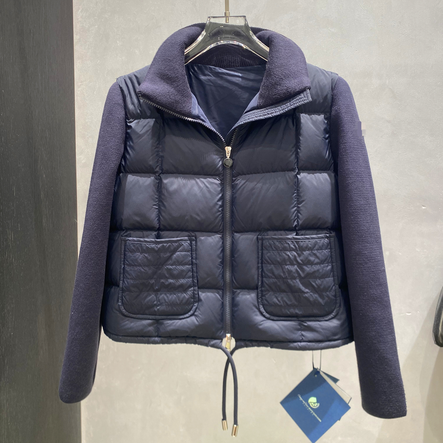 90+鸭鸭针织拼接修身羽绒服女2025秋冬气质短款轻薄修身保暖外套