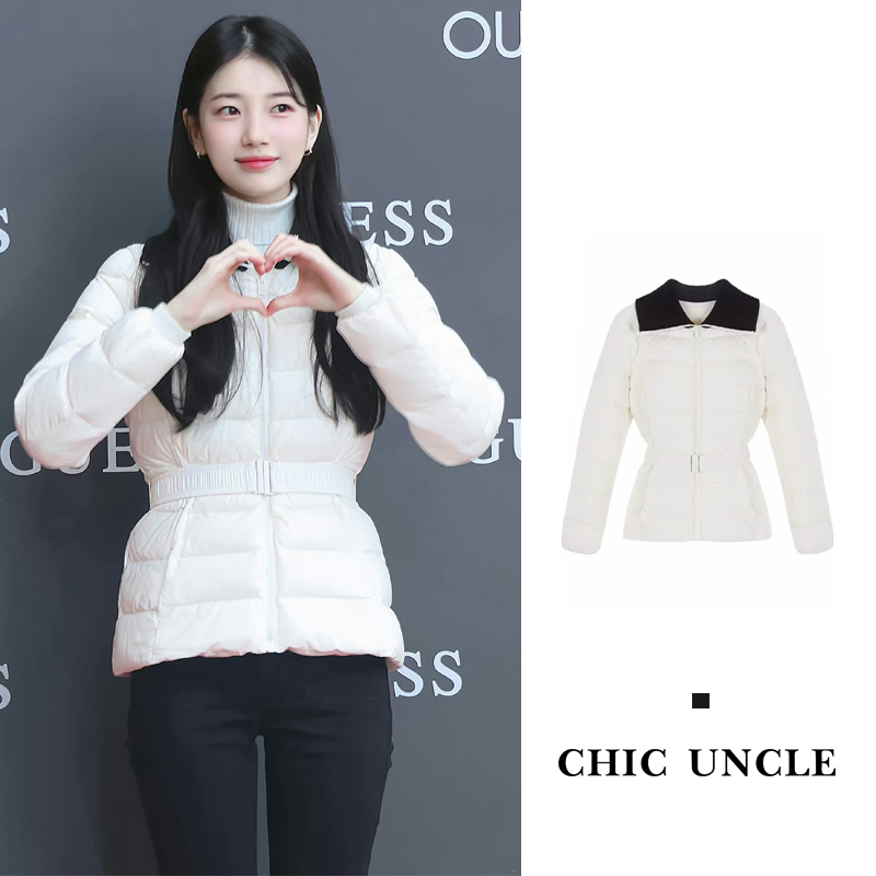 裴秀智同款白色收腰修身羽绒服女冬季2025新款韩版翻领小香风外套