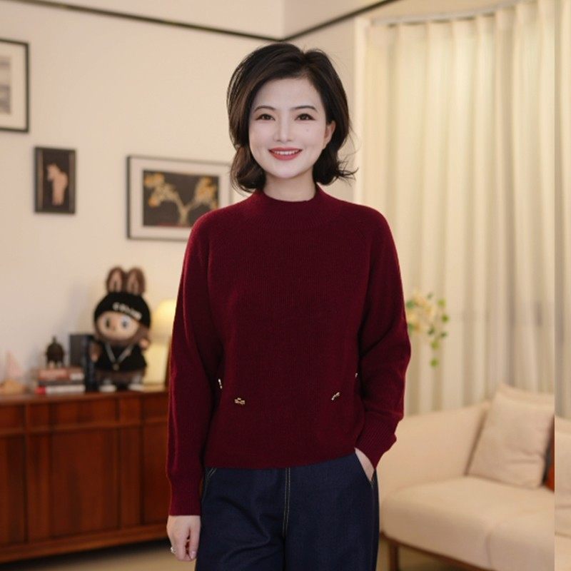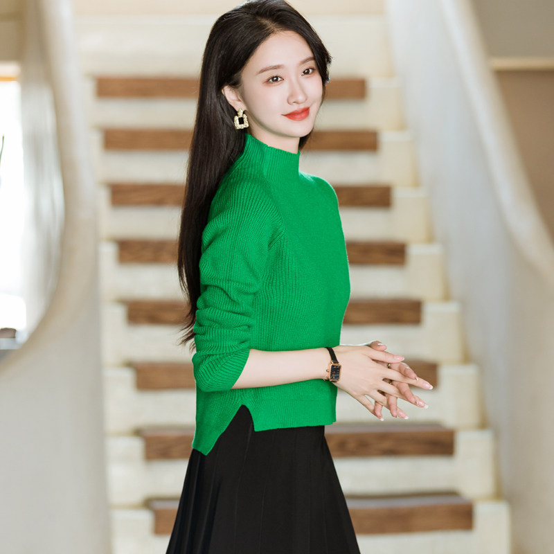 - 半高领毛衣女长