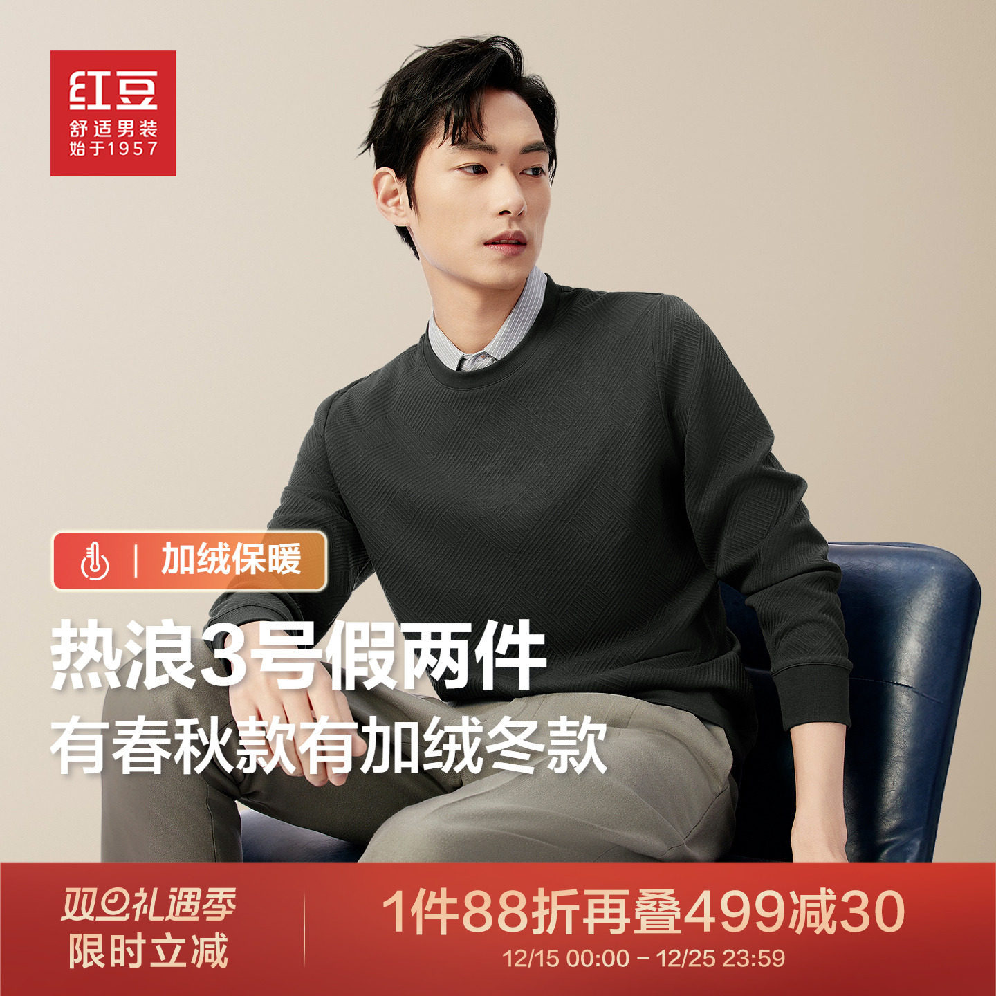 红豆男装假两件毛衫男25秋冬新品柔软有弹力假领子毛衣纯色卫衣