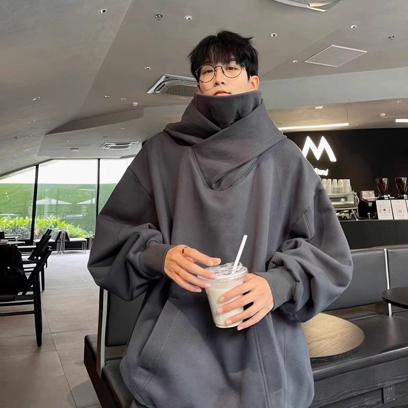 特大码300斤假两件社恐卫衣男女装秋冬季高领连帽衫纯色重磅外套2