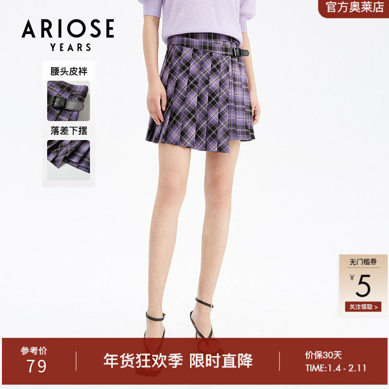 艾诺丝雅诗秋新品不规则格子短裙半身裙JK百褶裙女10813525