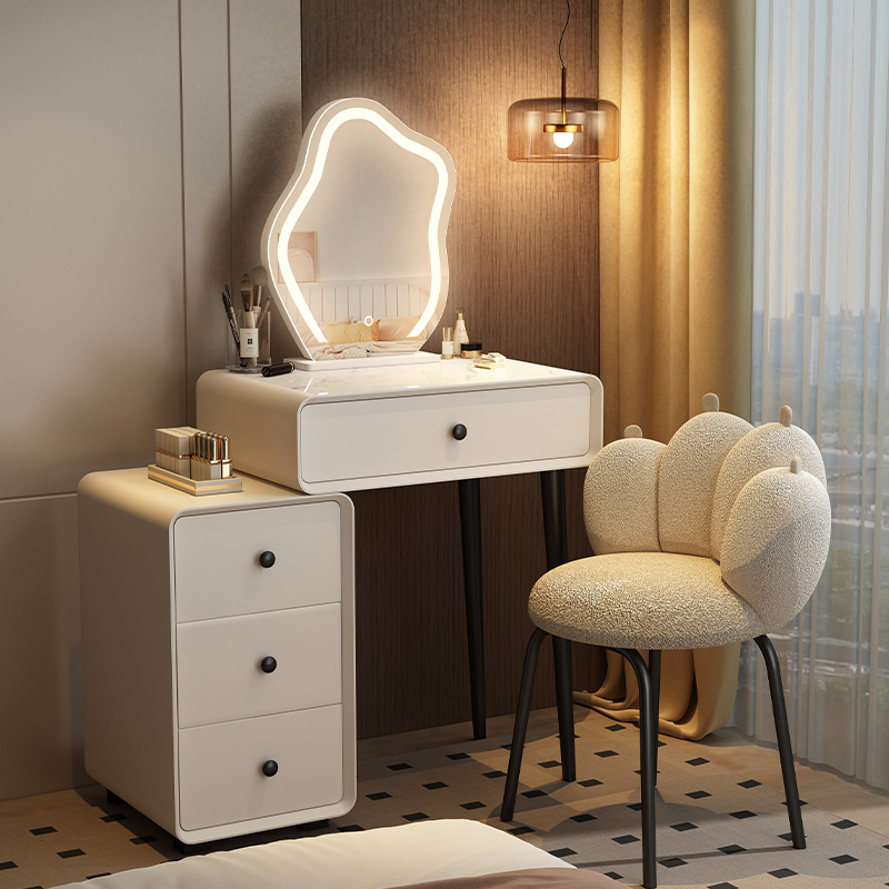 2025实木岩板梳妆台小户型化妆台床头用70cm卧室化妆桌储物柜一体