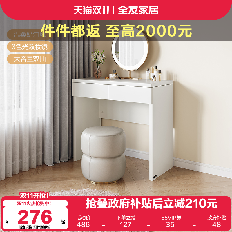 【直播间】全友家居奶油风梳妆台小户型卧室可伸缩斗柜一体化妆桌