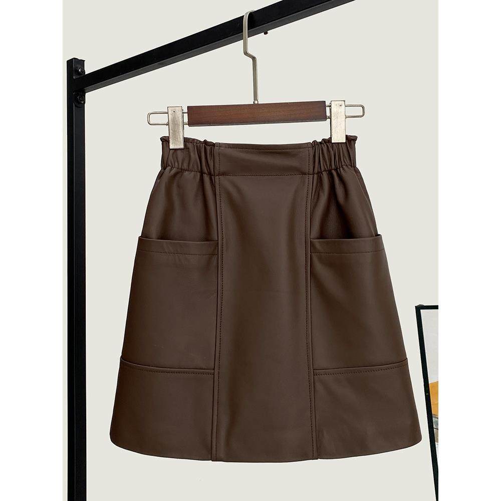 高档轻奢真皮短裙女士秋冬款时尚百搭高腰绵羊皮A字裙宽松半身裙