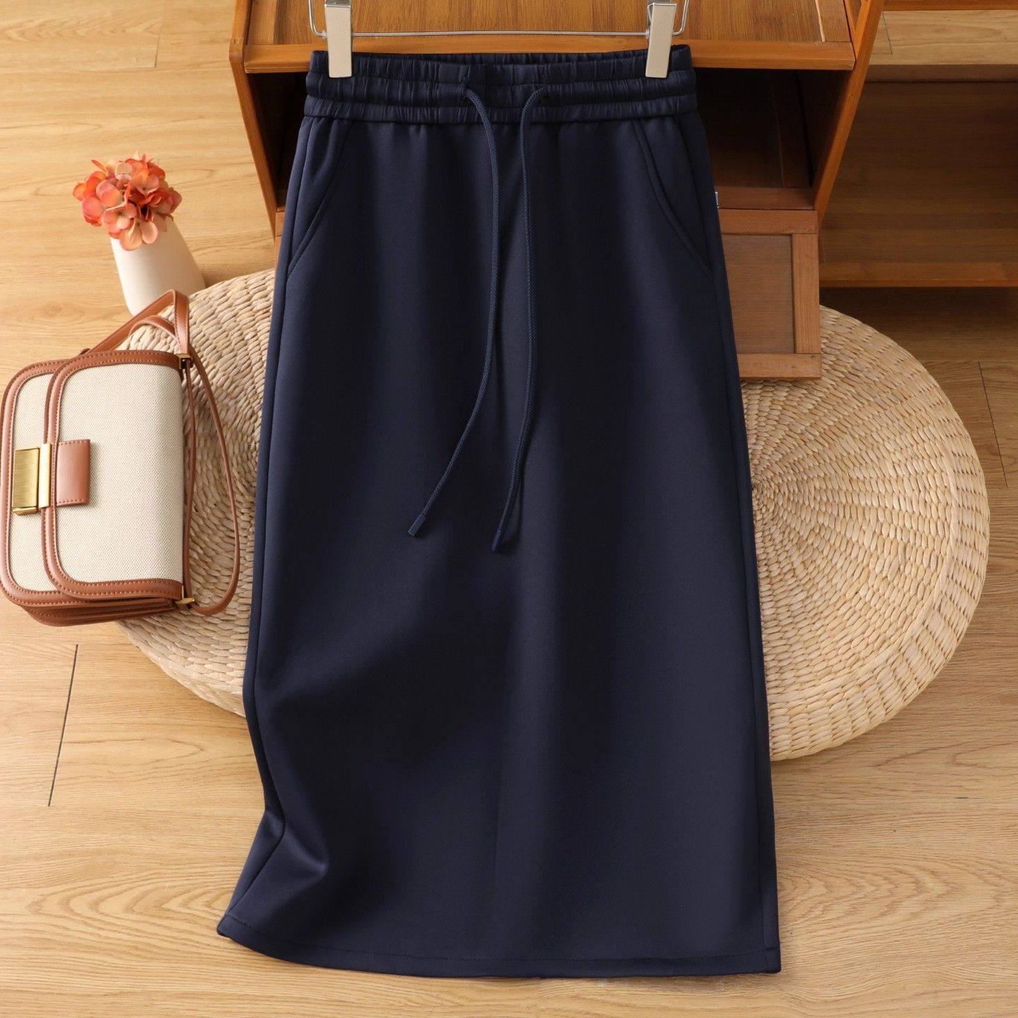 时尚中长款藏青色直筒裙女士2025秋冬款高腰显瘦巨好看a字半身裙