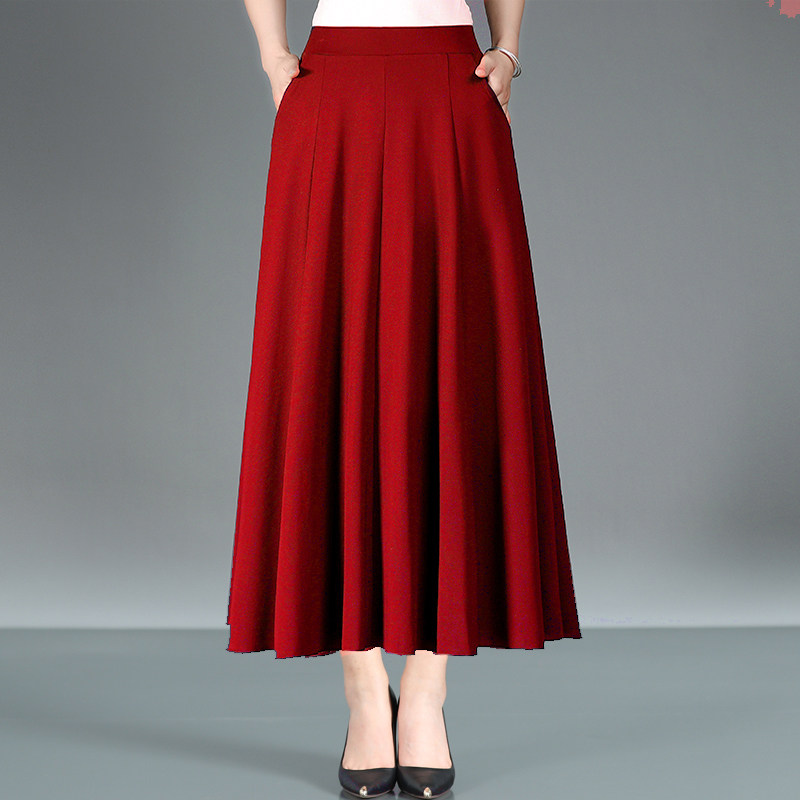 春秋冬款女士纯色多色松紧高腰显瘦垂感百搭大摆A字中长款半身裙