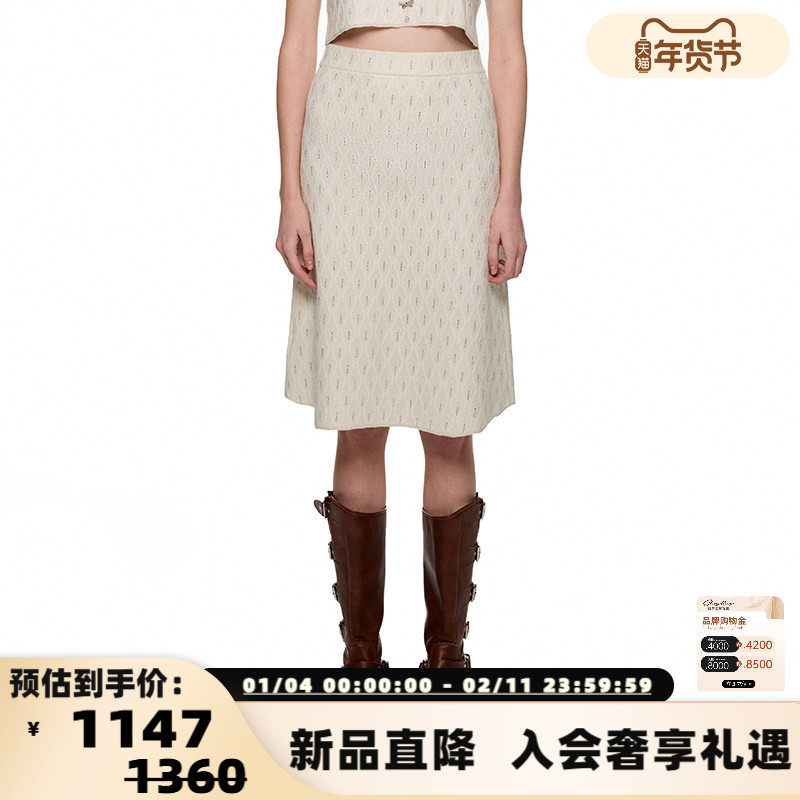 SHRO ENRO 25秋冬款女士烫钻菱格针织半身裙银泰百货 301469