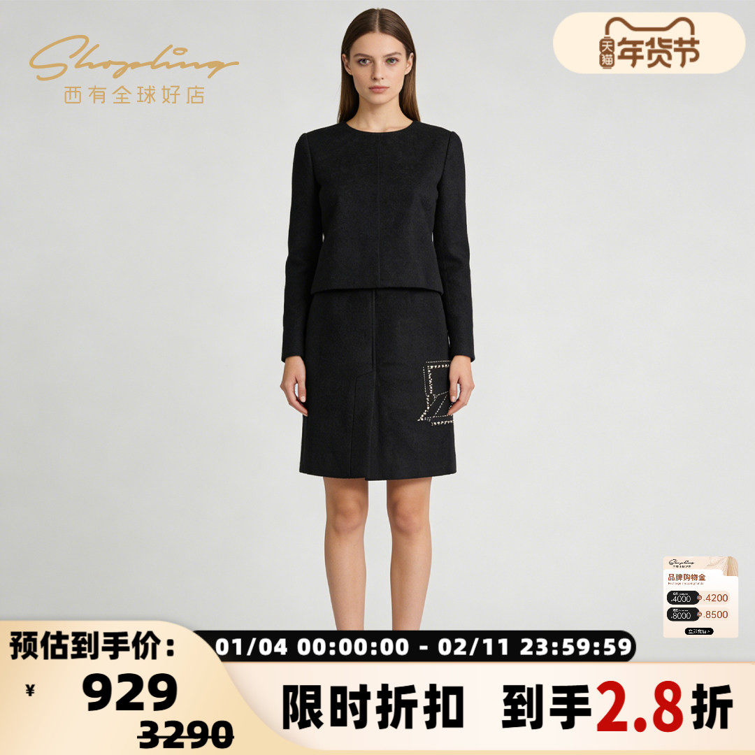 2025女士秋冬款 Miss DG 小香风蝴蝶结系带外套加半身裙两件套装