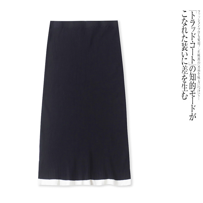 K0953外贸女士甜美针织裙秋冬款松紧腰弹力修身显瘦中长款半身裙