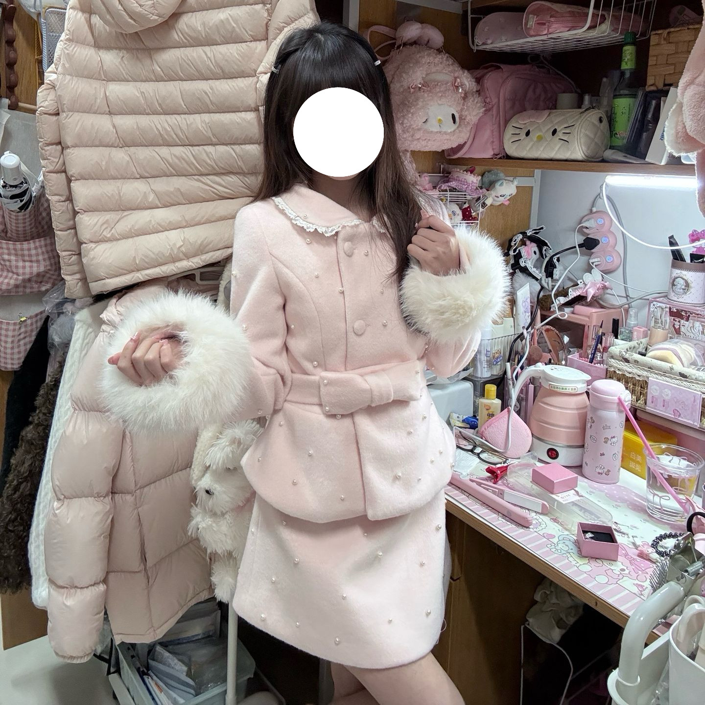 女士两件套气质可爱外套上衣半身裙套装秋冬款千金法式甜美大小姐