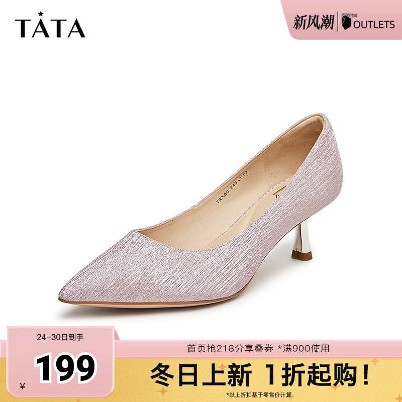 Tata他她尖头奥莱高跟鞋女法式宴会通勤低跟单鞋2025秋新7RXB9AQ4