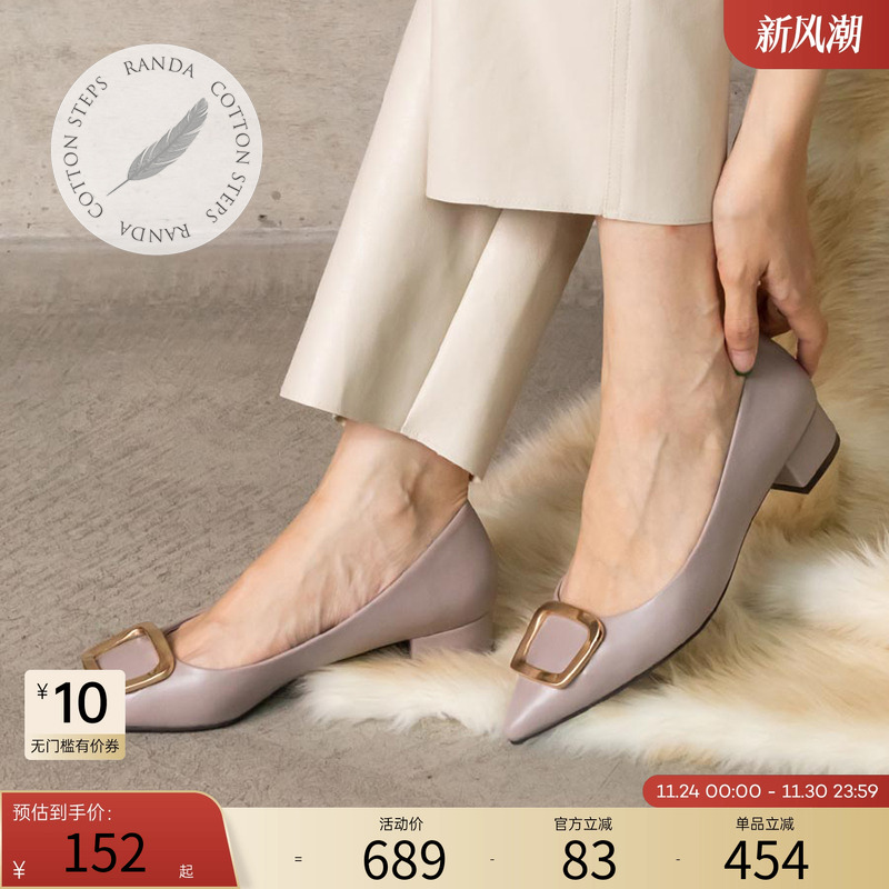 RANDA 秋冬新款COTTON尖头粗跟低跟日系通勤商务单鞋女 PP10570