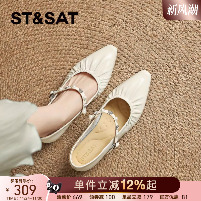 星期六平底单鞋女秋季新款尖头低跟软底法式气质绝美配裙子通勤鞋