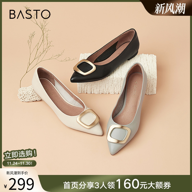 百思图秋商场同款百搭通勤方扣尖头低跟晚晚风女单鞋RGR36CQ1