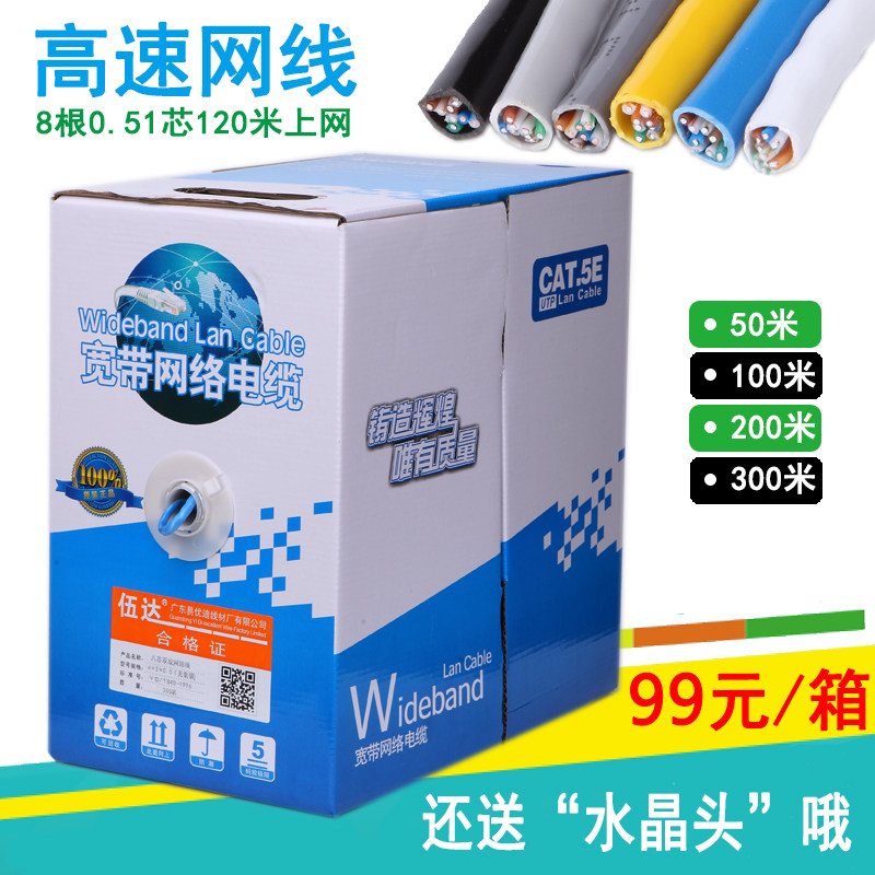 包邮网线高速超五类网线8芯双绞线监控网线家用宽带线网络线300米