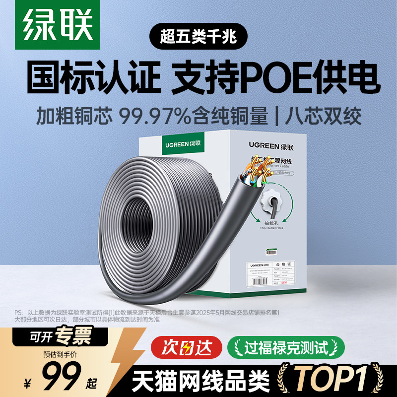 绿联超五类网线5类整箱六类千兆网线6类线工程家用监路由器连接线