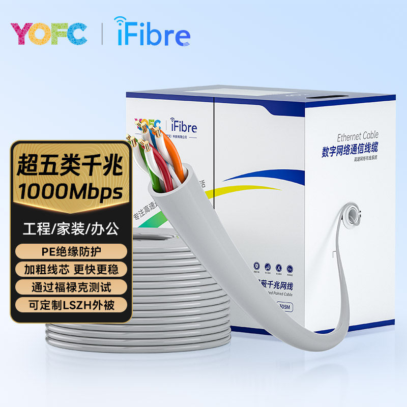 长飞丨iFibre 超五类网线千兆家用8芯工程纯铜家用工程网络宽带线