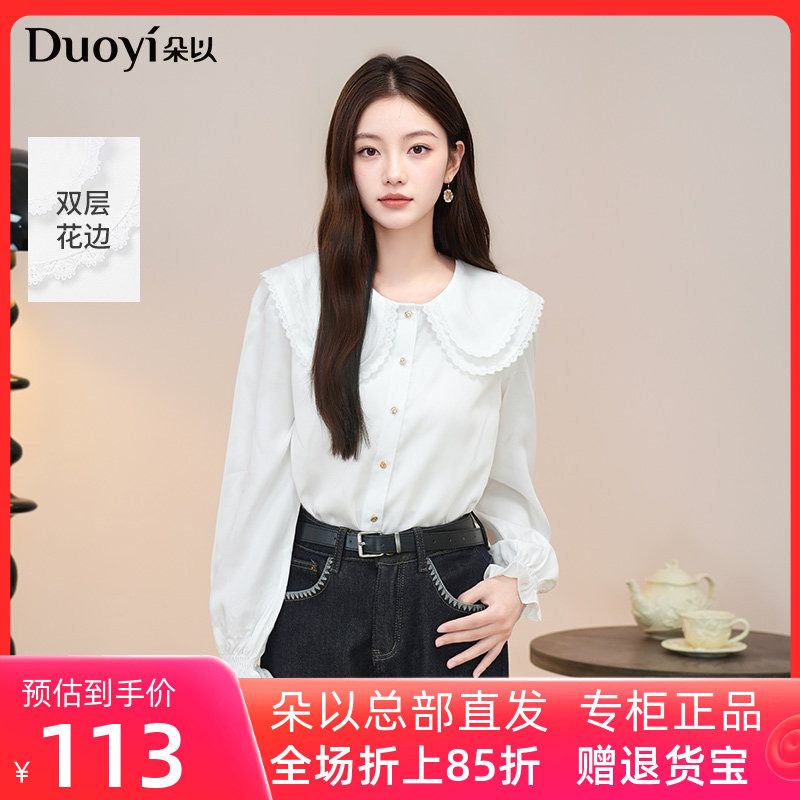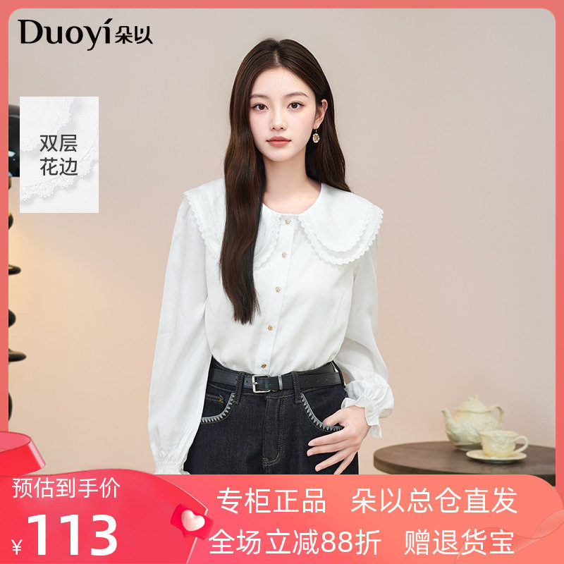朵以2025秋季新款甜美温柔少女感学院风减龄通勤花边娃娃领白衬衫