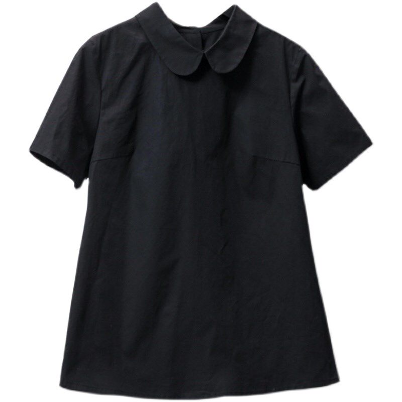 日系娃娃领白衬衫打底衫宽松百搭减龄小清新大码设计感女上衣黑色