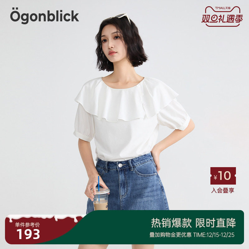 商场同款北欧时刻娃娃领白衬衫女夏新款设计泡泡袖百搭小个子上衣