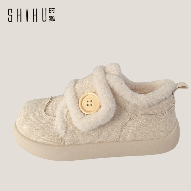 时狐豆豆鞋子女冬外穿百搭毛毛鞋加绒加厚保暖雪地靴2025新款冬季