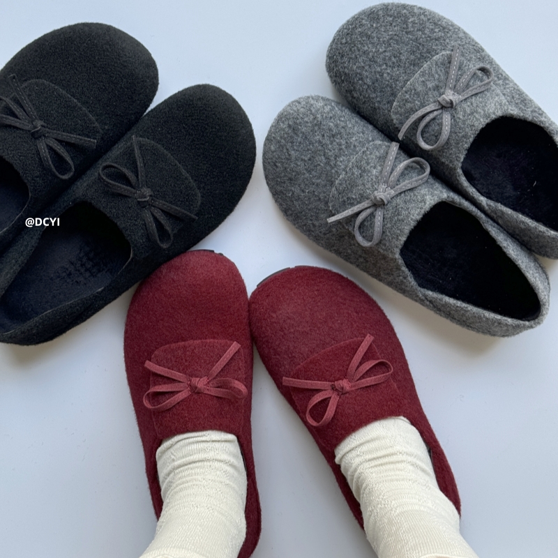 细细条 复古蝴蝶结乐福棉鞋女百搭平底防滑冬天亲子室外豆豆鞋ins