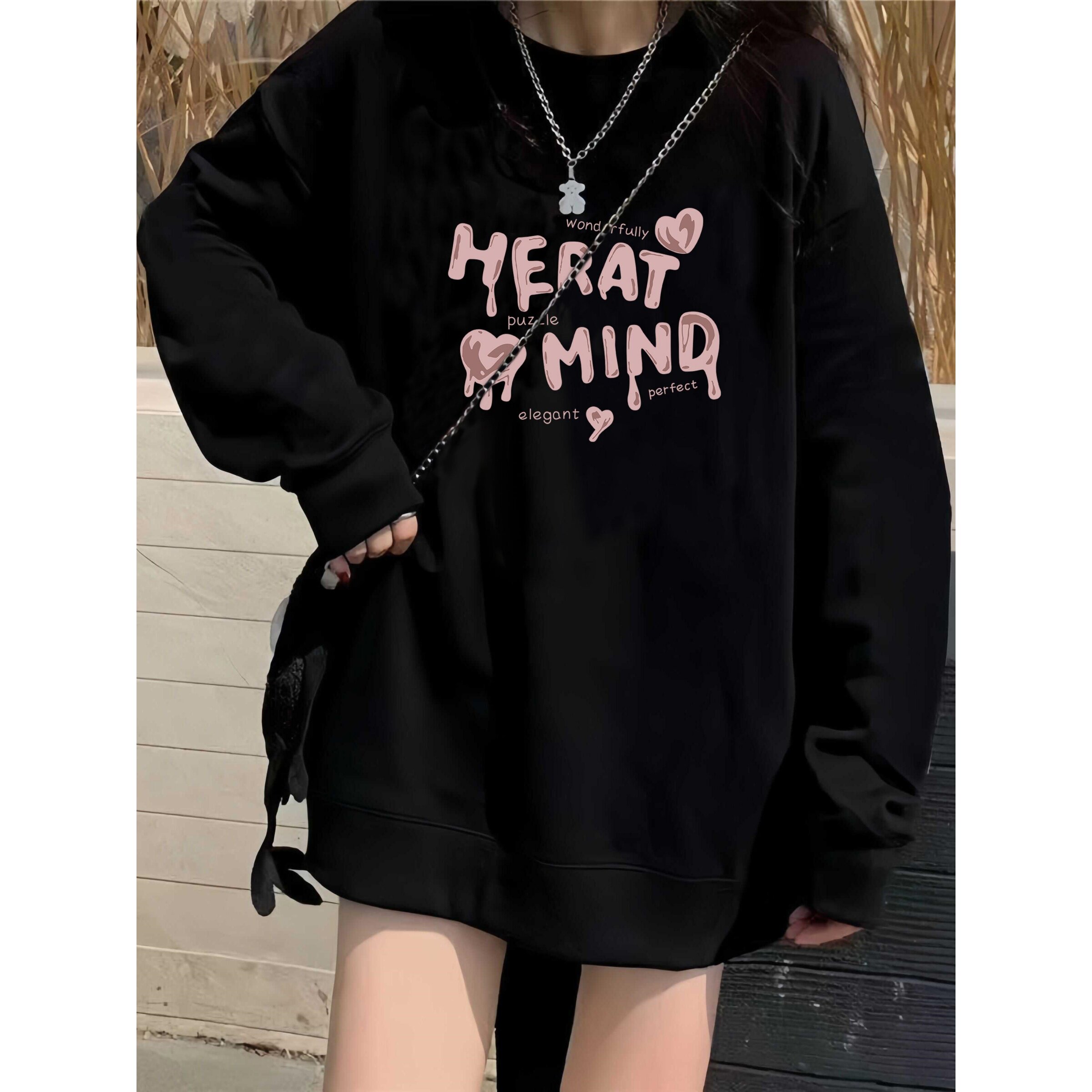 黑色显白圆领卫衣女生2025秋冬新爆款oversize宽松休闲风外套藏肉