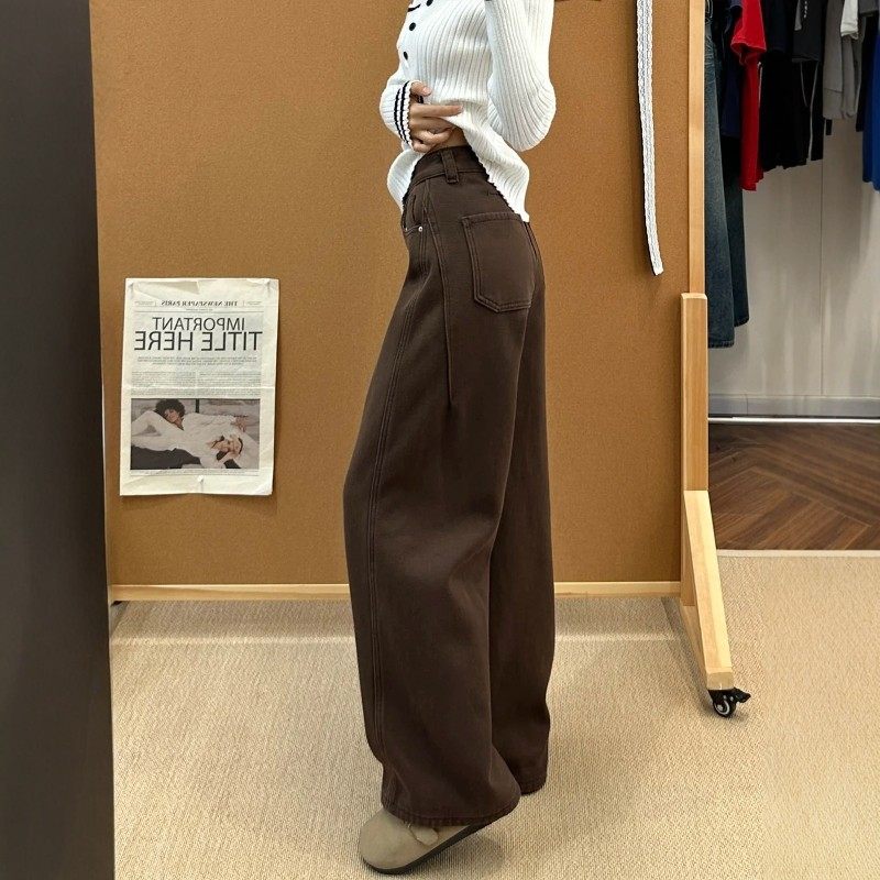 高腰加绒加厚牛仔裤女宽松直筒裤子2025新款垂感拖地窄版阔腿裤冬