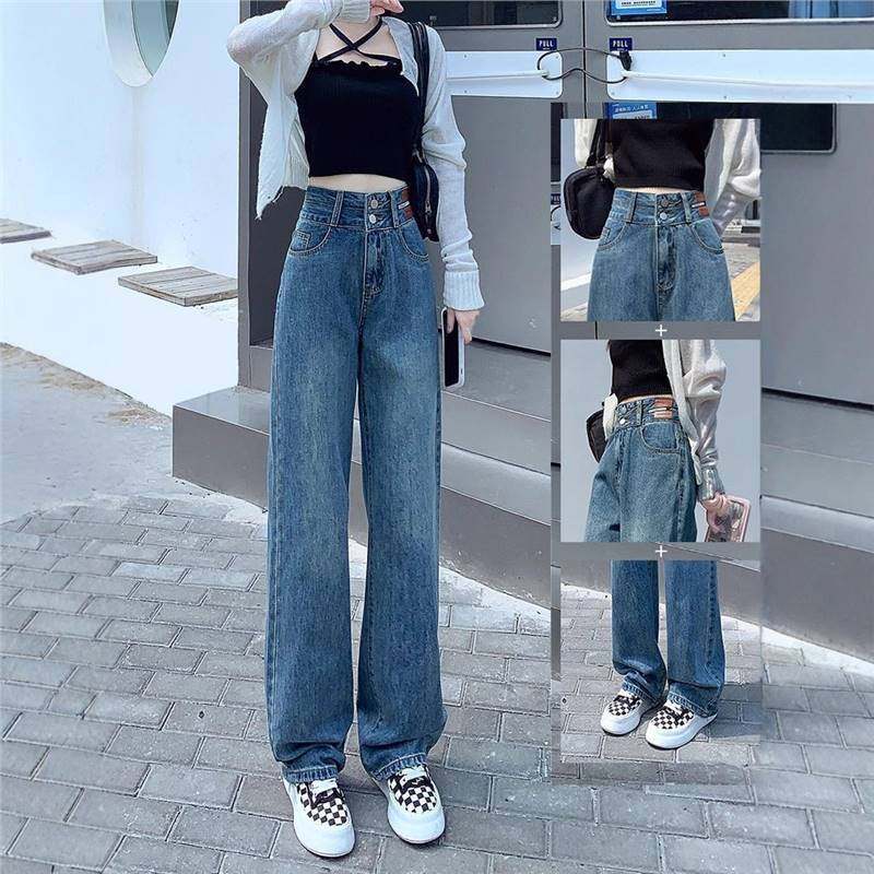 大码女装胖mm复古高腰阔腿加绒加厚牛仔裤女宽松直筒垂感拖地裤子