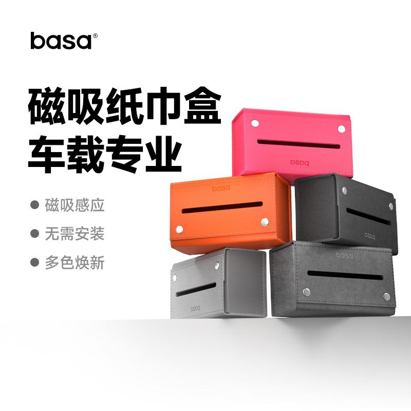 basa车载纸巾盒nappa皮革磁吸中控台车用扶手箱车顶高级抽纸盒