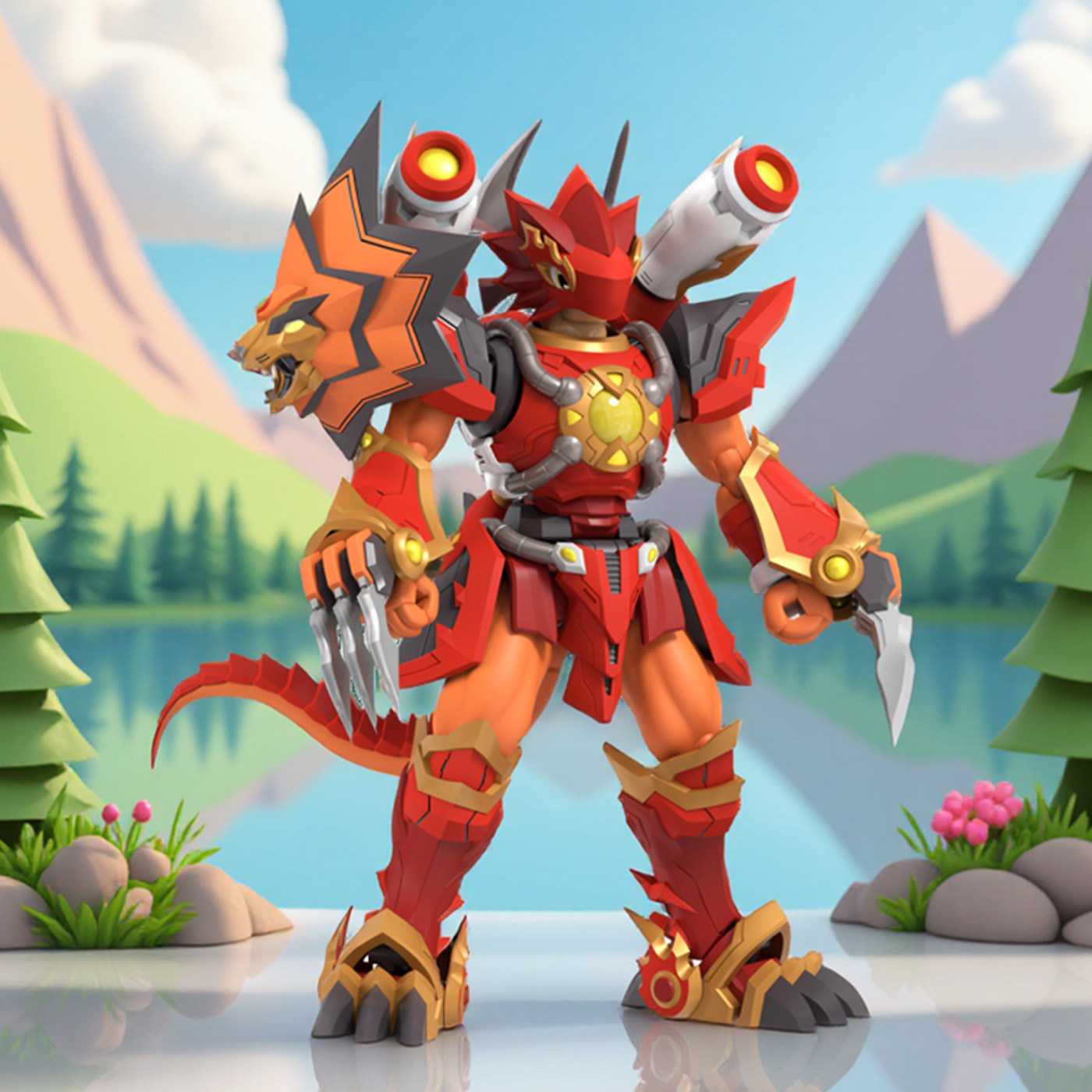 正版斗龙战士2终极龙神六合体烈古拉赤炎战车6寸变形机器人玩具