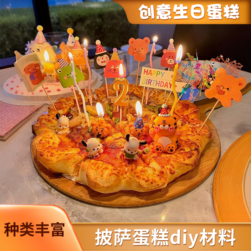 网红披萨蛋糕装饰汉堡DIY小红书同款帕恰狗小熊蜡烛生日派对插件
