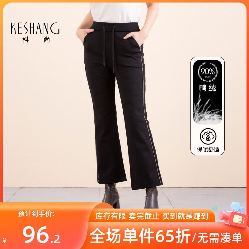 科尚黑色阔腿裤女2025冬季新款加厚保暖羽绒裤休闲直筒长裤子百搭