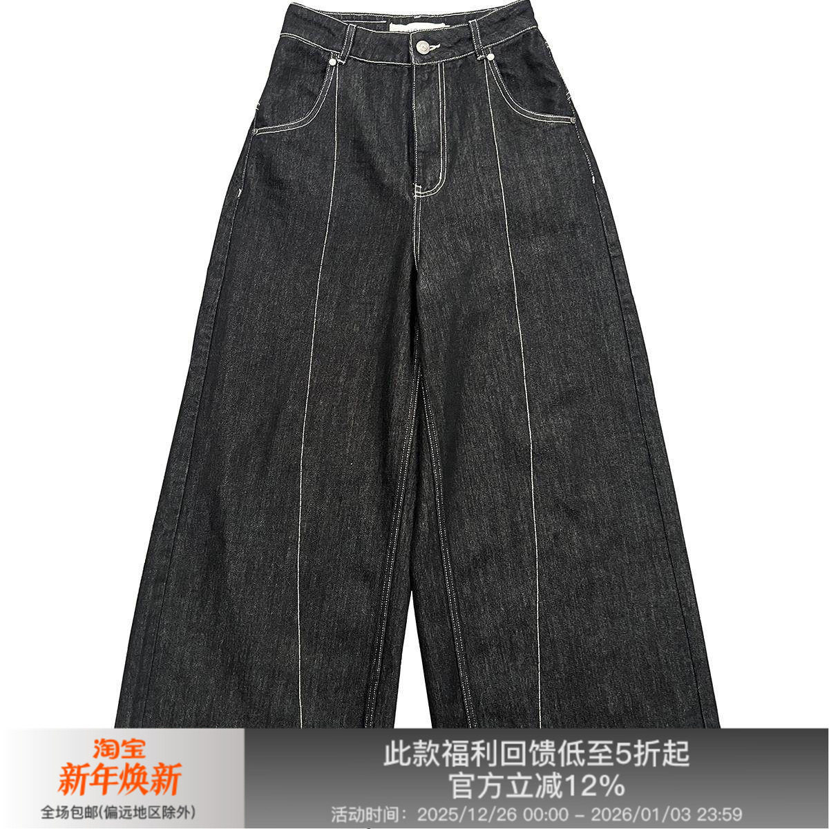 KP真维斯女装2025秋季新款时尚显瘦黑色阔腿裤宽松直筒牛仔裤女