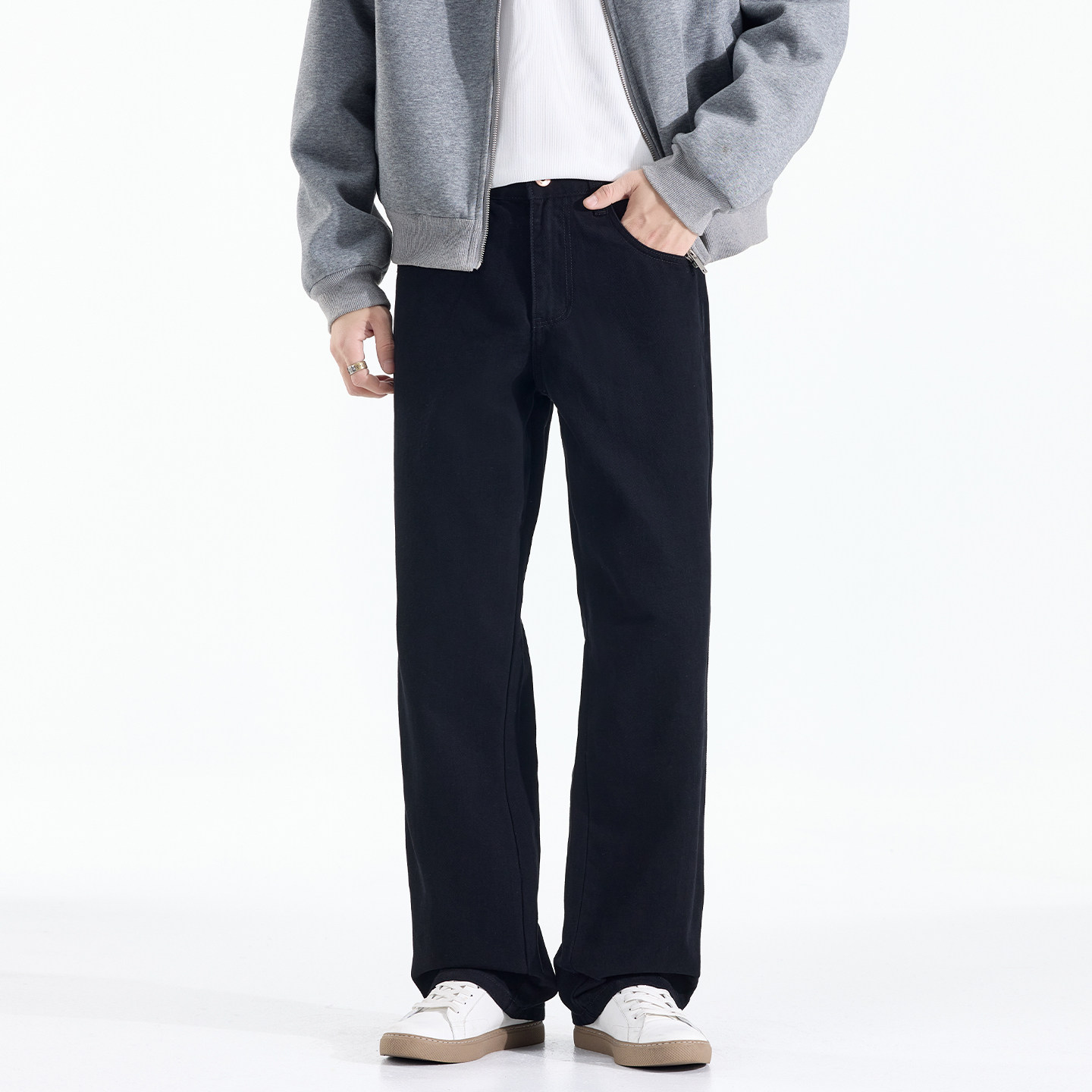 Kuvine秋冬季加绒牛仔裤男款美式高街宽松直筒cleanfit黑色阔腿裤