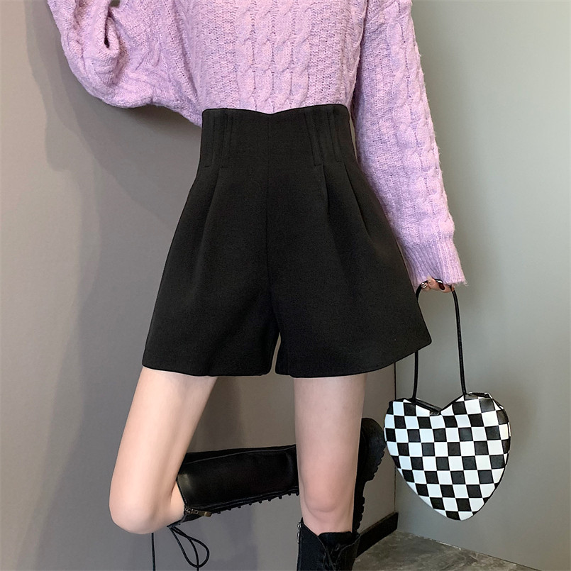 秋冬季2025年新款高腰黑色阔腿裤子显瘦毛呢休闲短裤女装时尚靴裤