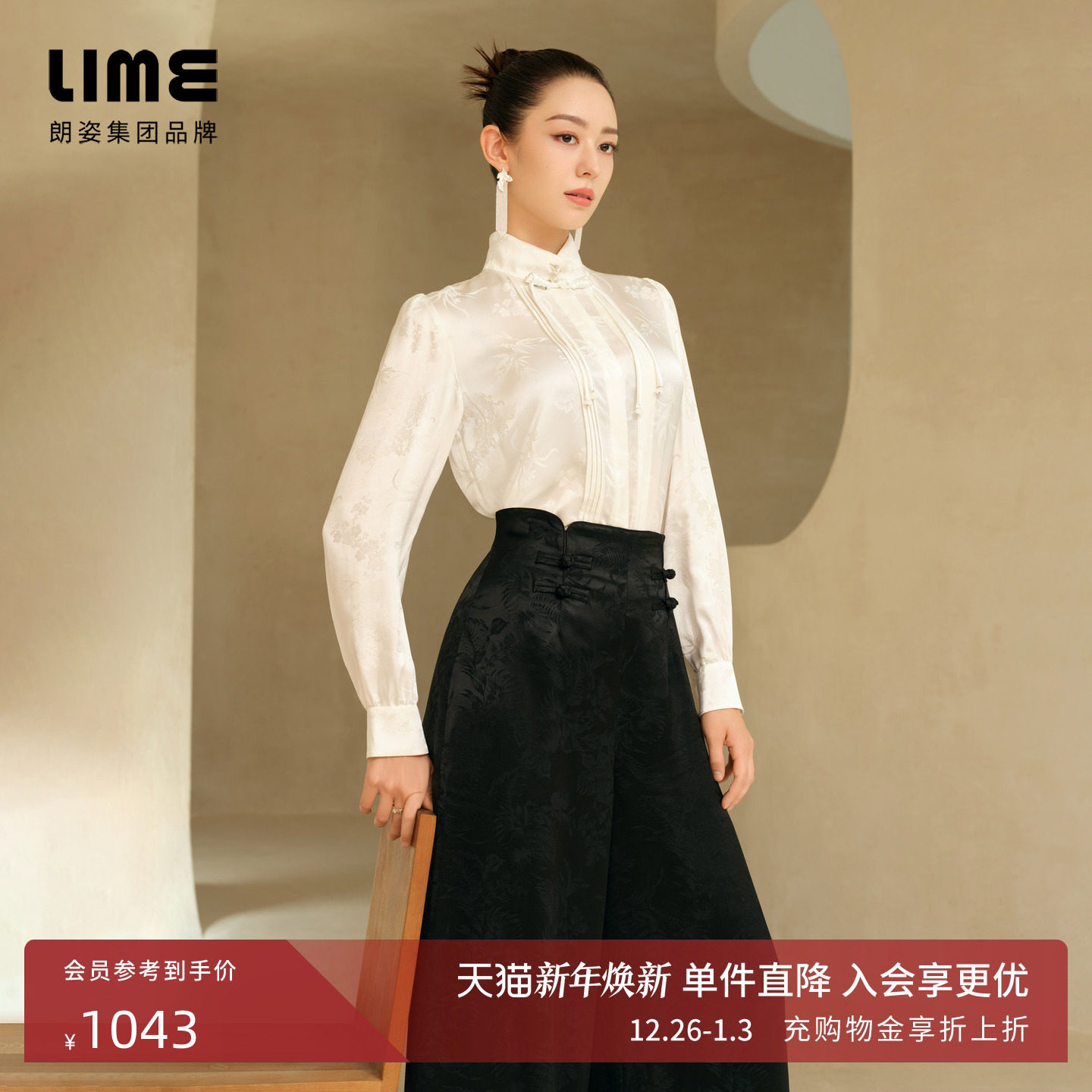 【吉娜同款】LIME莱茵新中式高腰提花黑色阔腿裤秋冬新款垂感