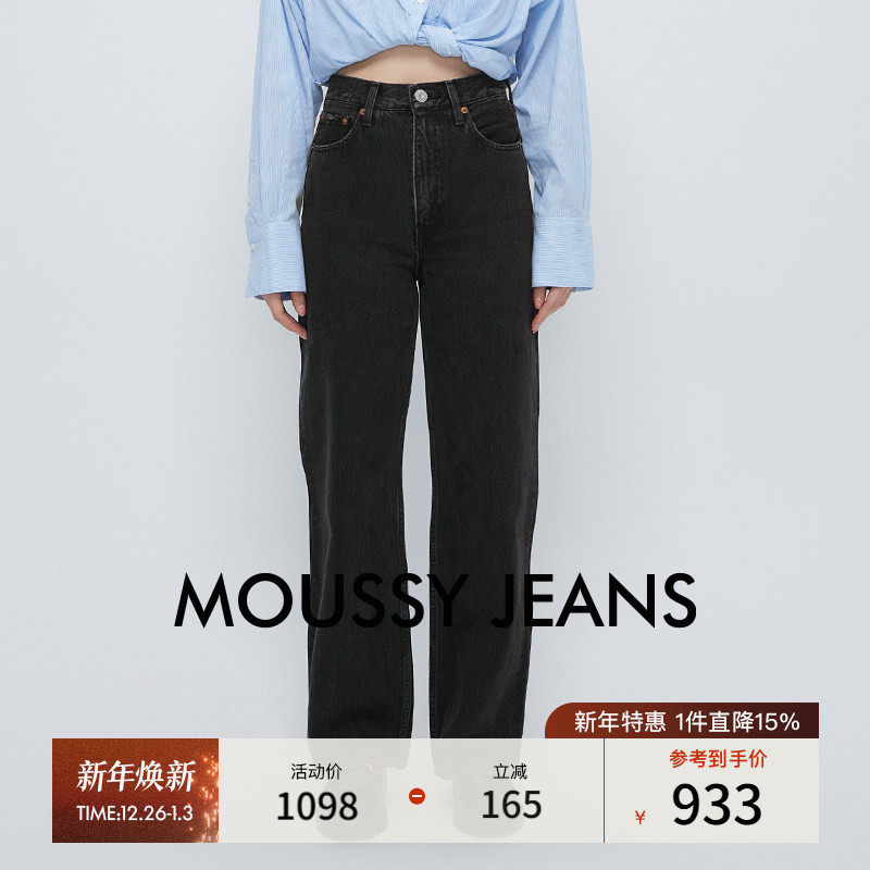 MOUSSY 冬季新品通勤丹宁黑色阔腿裤棉质牛仔裤010HAA11-5861
