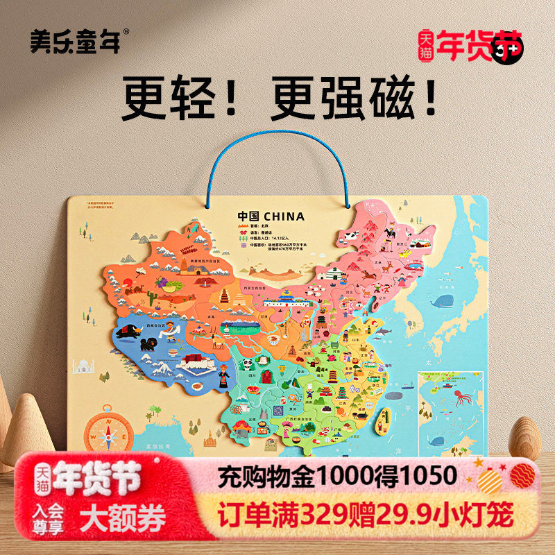 美乐童年磁力中国地图拼图儿童早教益智玩具地理认知儿童生日礼物