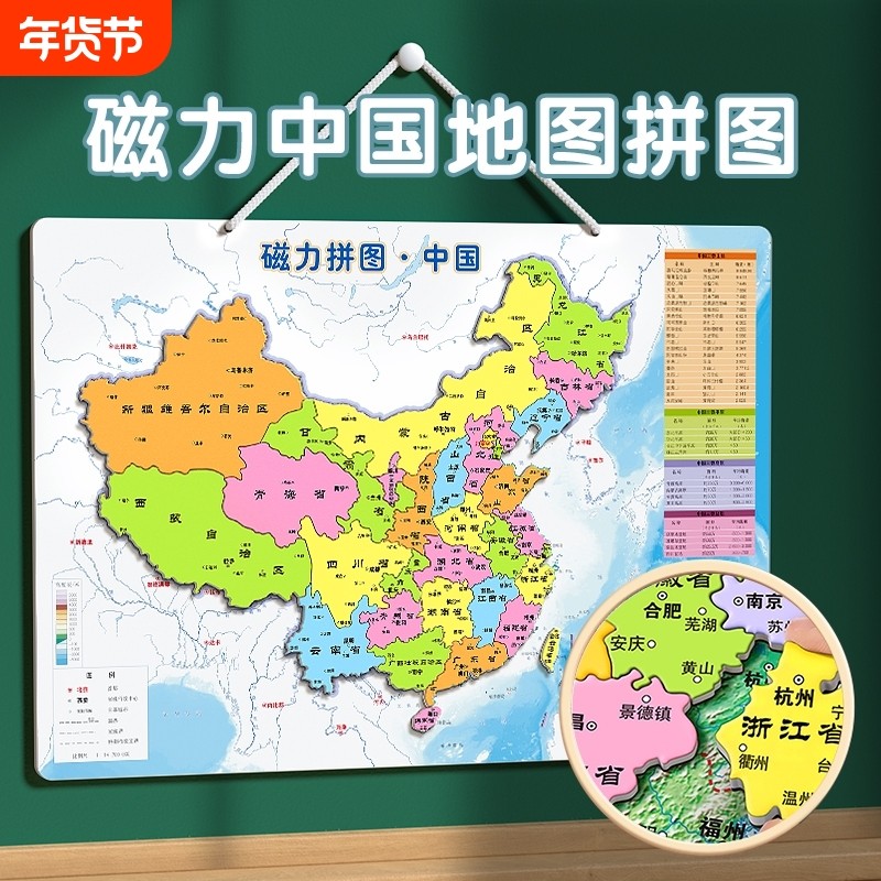中国地图磁力拼图初中生专用世界行政区划地理儿童版2025新版磁吸