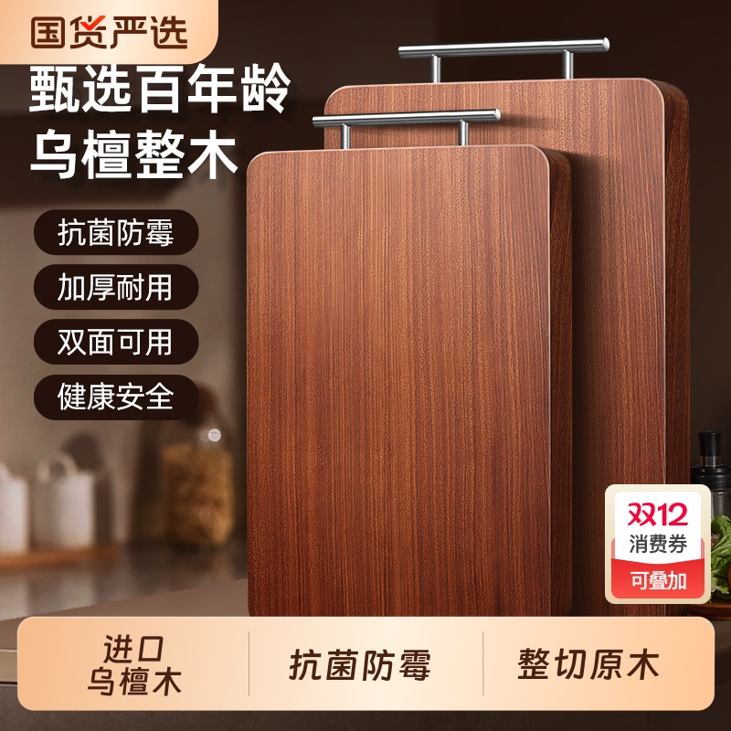 乌檀木菜板实木抗菌防霉家用砧板木质案板抑菌双面切菜板厨房便捷